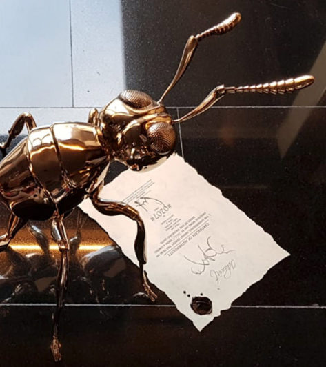 Desert Operation is a work that is conceived with the integration of a finite number of up to 1000 elements in polished bronze (leght 60 cms) where the direct intervention of its owners confer the final result.